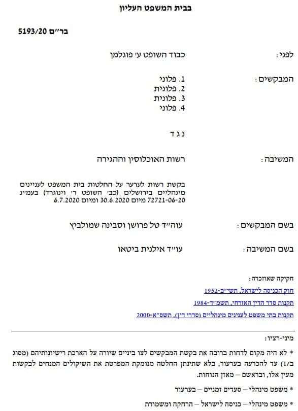 פסק-דין בית המשפט העליון לעניין השבת אשרות עבודה למבקשי מעמד על רקע רפואי