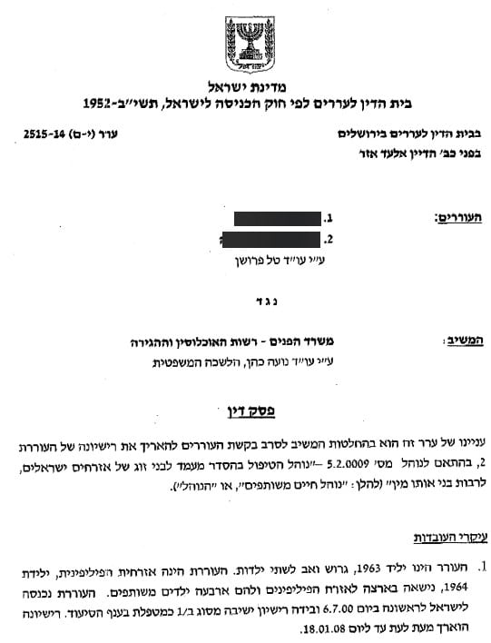 פסק-דין של בית הדין לעררים בנושא ההליך המדורג לזוגות ידועים בציבור