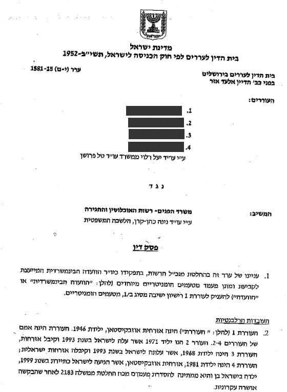 פסק דינו של בית הדין לעררים לעניין בקשת מקלט של פליט